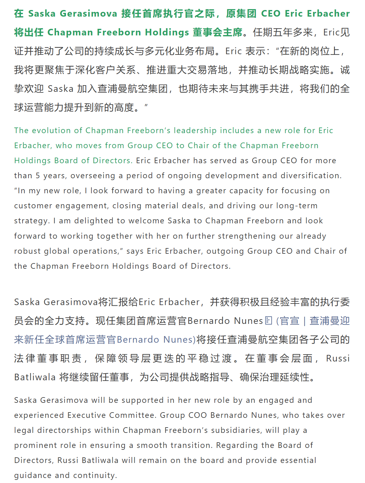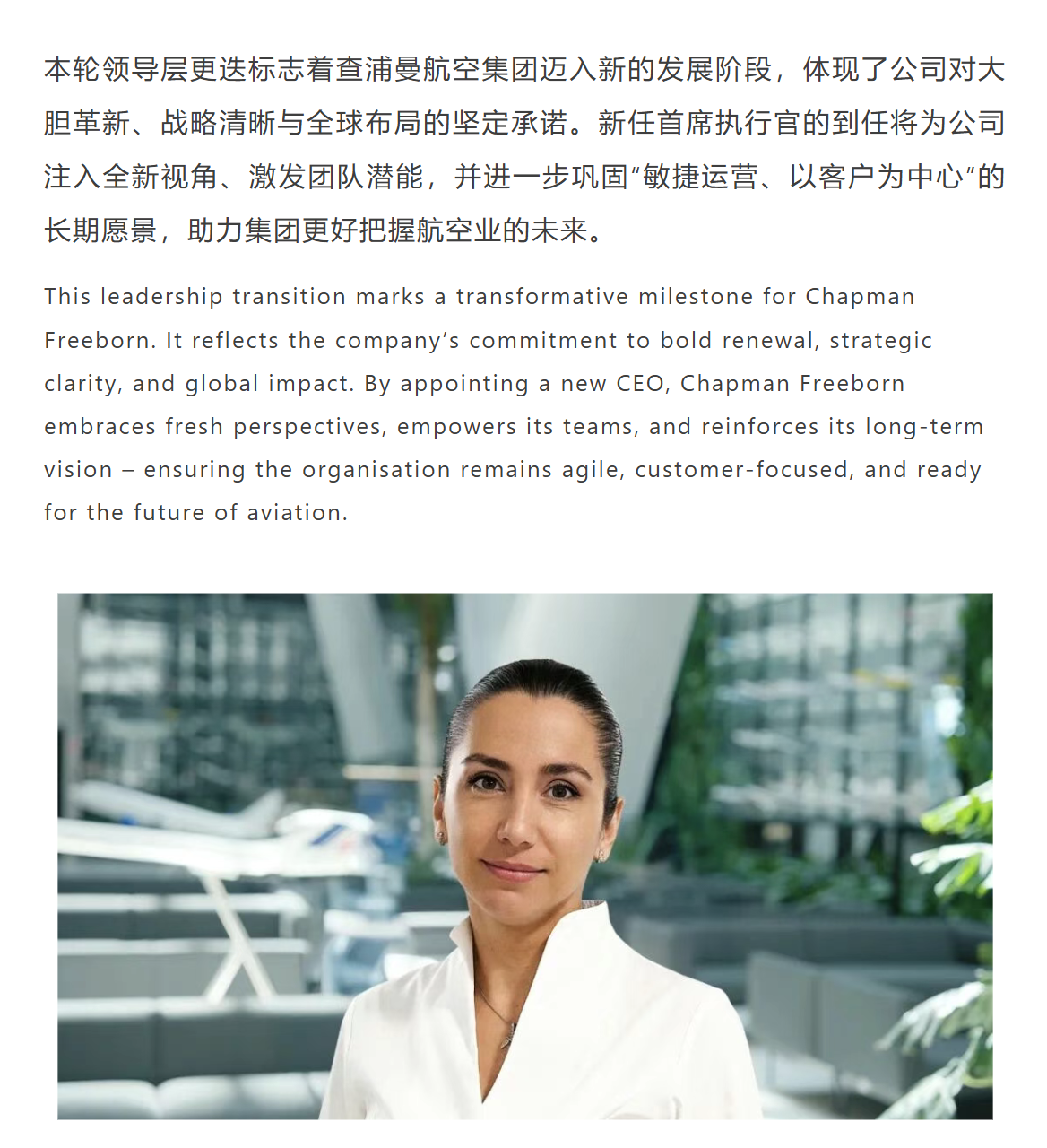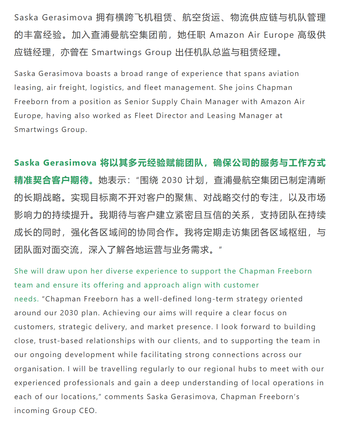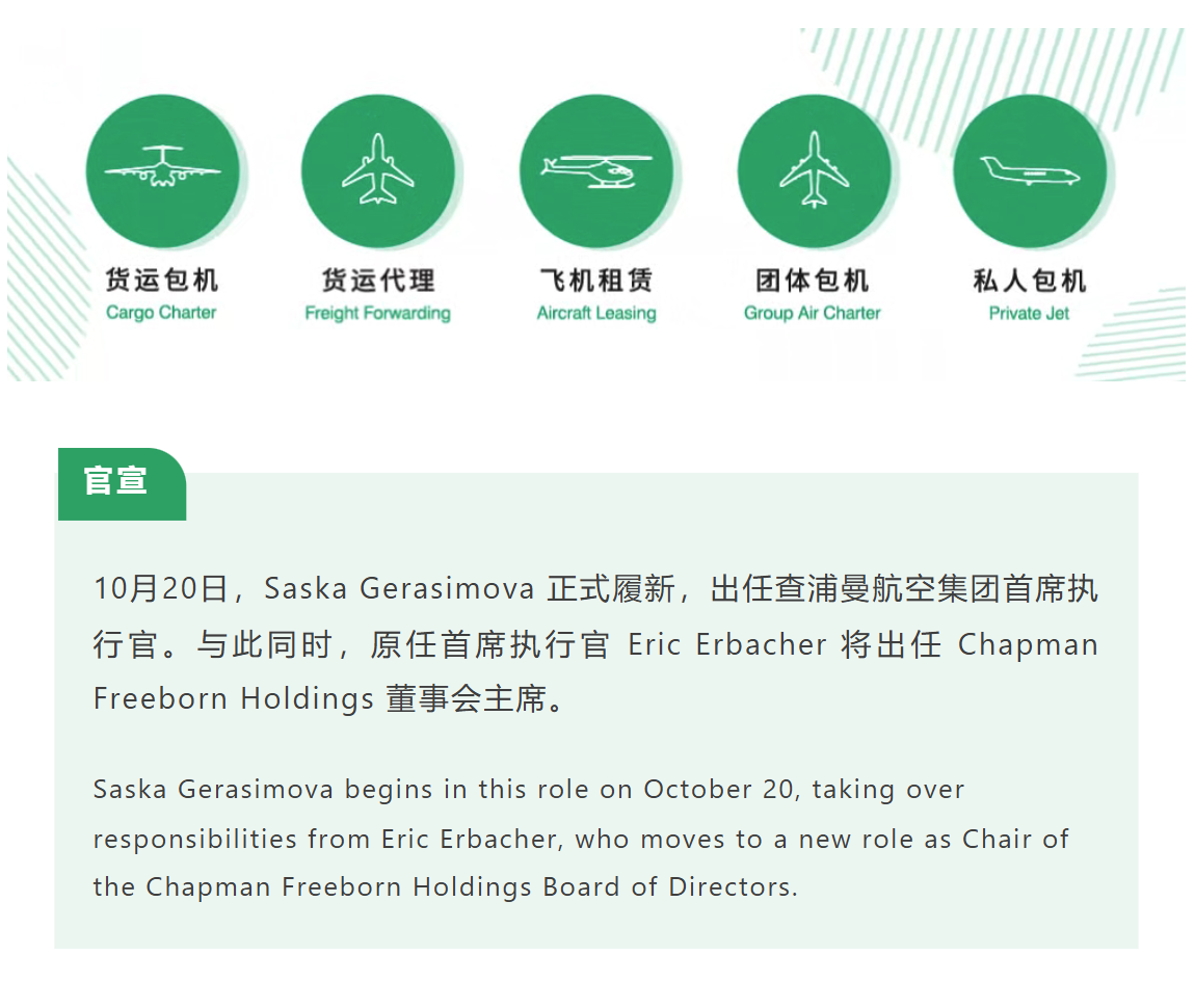 官宣 | 查浦曼航空集團委任 Saska Gerasimova 為新一任集團首席執行官